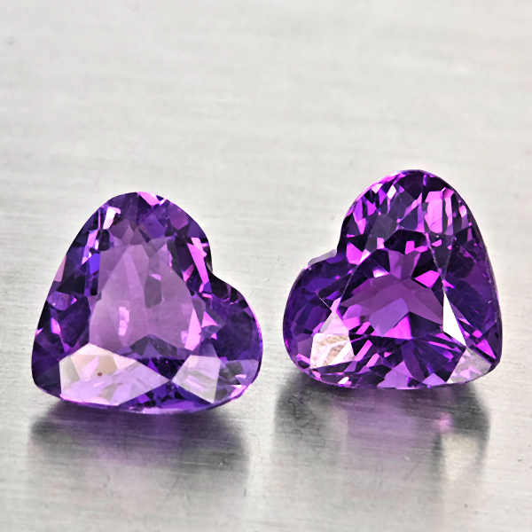Natural Purple Amethyst 5.75 Ct. 2 Pcs Heart Shape 9.7 x 8.9 Mm Gemstone From Brazil