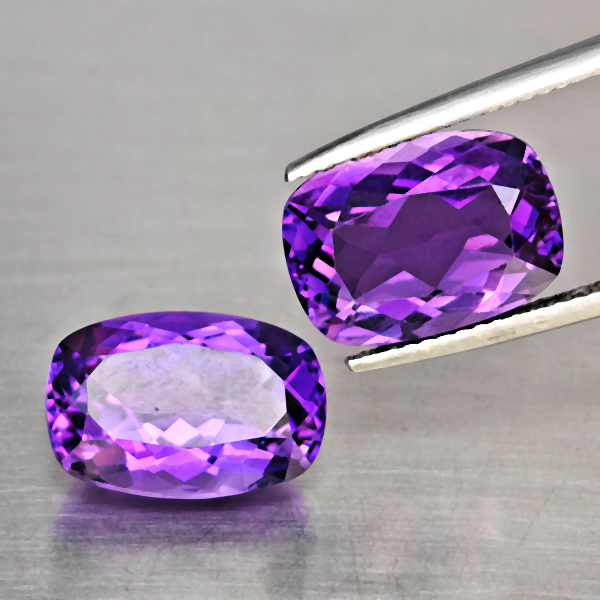 Natural Purple Amethyst 10.05 Ct. 2 Pcs Cushion Shape 13.2 x 9 Mm Gemstone From Brazil