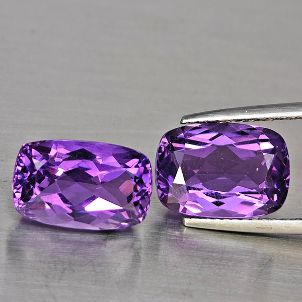 Natural Purple Amethyst 8.75 Ct. 2 Pcs Cushion Shape 12.5 x 8 Mm Gemstone From Brazil
