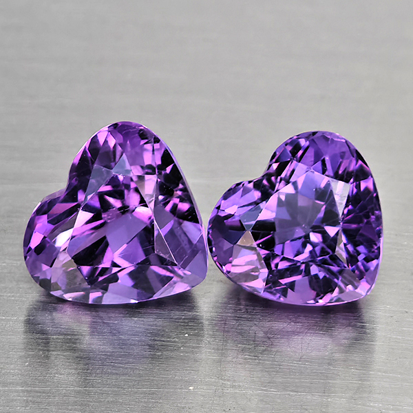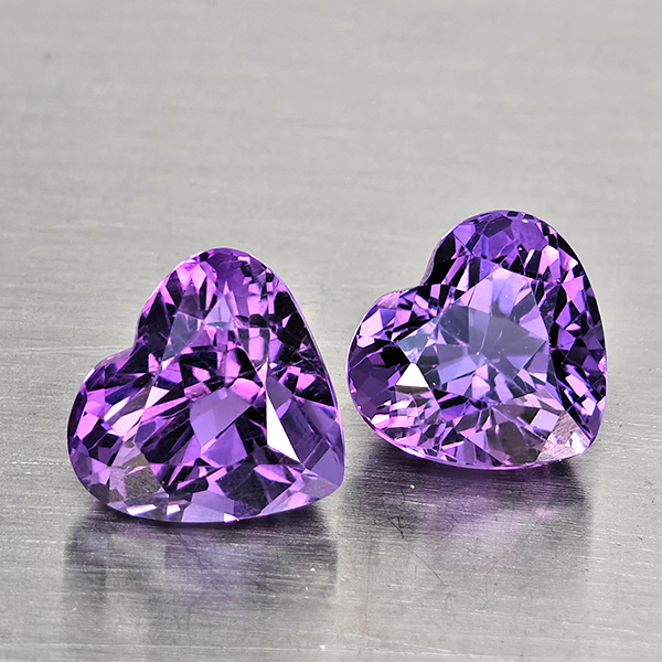 Natural Purple Amethyst 5.36 Ct. 2 Pcs Heart Shape 9.3 x 8.4 Mm Gemstone From Brazil
