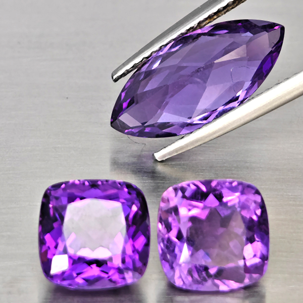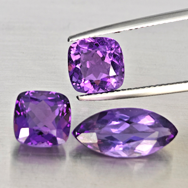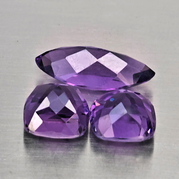 Natural Purple Amethyst 8.74 Ct. 3 Pcs Mixed Shape Gemstone From Brazil