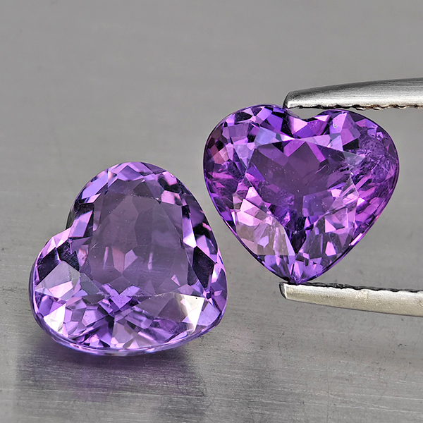 Natural Purple Amethyst 5.98 Ct. 2 Pcs Heart Shape 10 x 9.2 Mm Gemstone From Brazil