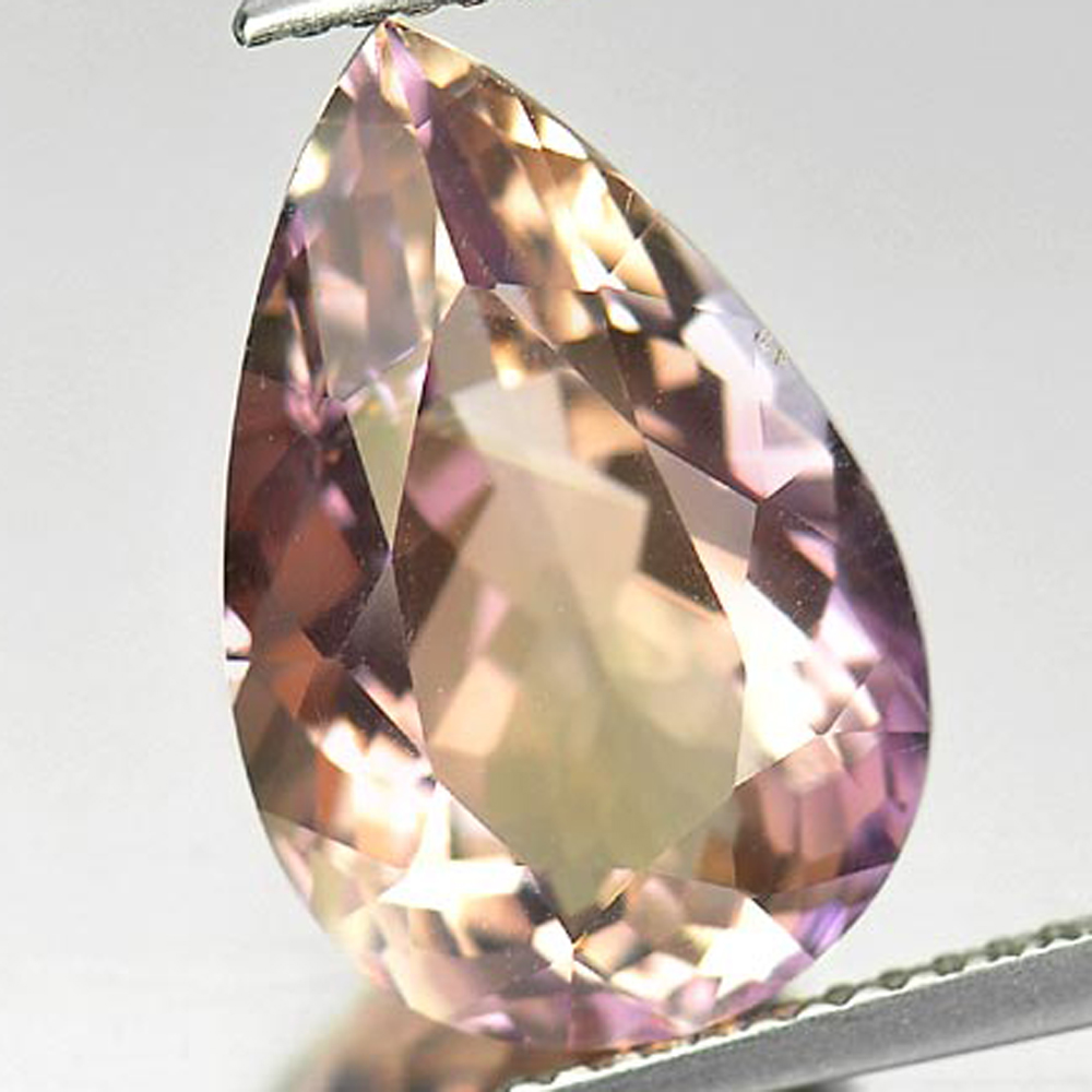 Bi Color Ametrine 6.97 Ct VVS Pear Shape 16.3 x 10.6 Mm Natural Gem From Bolivia
