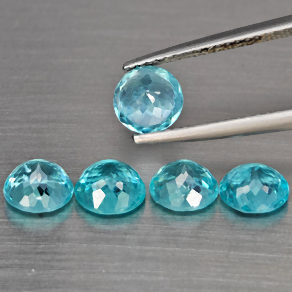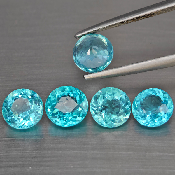Natural Paraiba Color Apatite 4.78 Ct. 5 Pcs Round Shape 6 Mm Gemstne From Tanzania