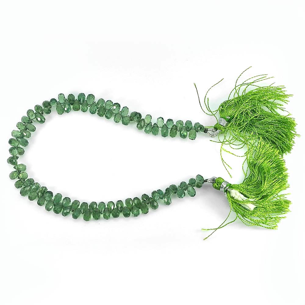 Unheated 55.75 Ct Briolette Natural Gemstones Green Apatite Beads Length 8 Inch.