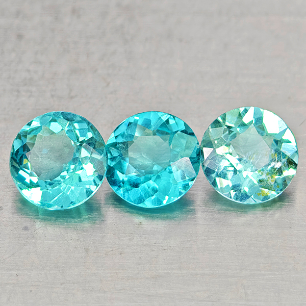 Natural Paraiba Color Apatite 1.33 Ct. 3 Pcs Round Shape 5 Mm Gemstones