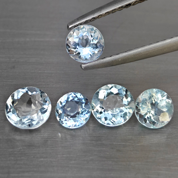 Natural Baby Blue Aquamarine 1.93 Ct. 5 Pcs Round Shape Gemstone From Brazil