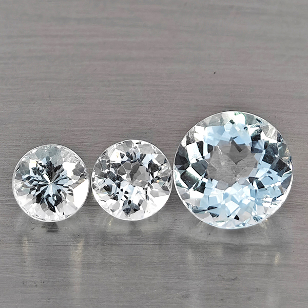 Natural Baby Blue Aquamarine 2.22 Ct. 3 Pcs Round Shape Gemstone From Brazil