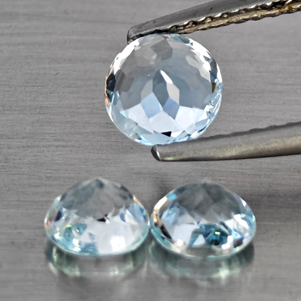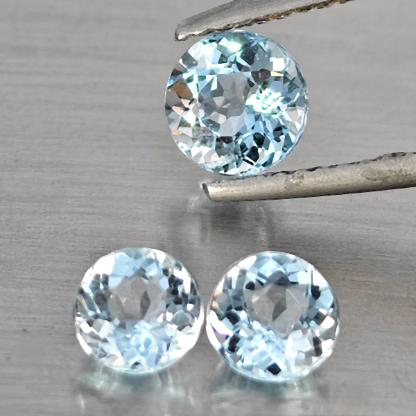 Natural Baby Blue Aquamarine 1.68 Ct. 3 Pcs Round Shape Gemstone From Brazil