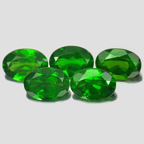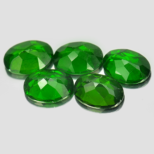 Green Chrome Diopside 4.13 Ct. 5 Pcs. Oval 7 x 5.2 Mm. Natural Gems Unheated