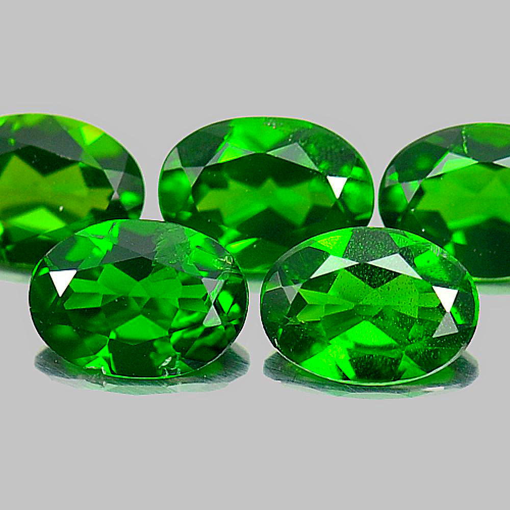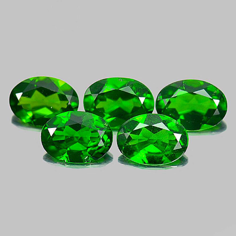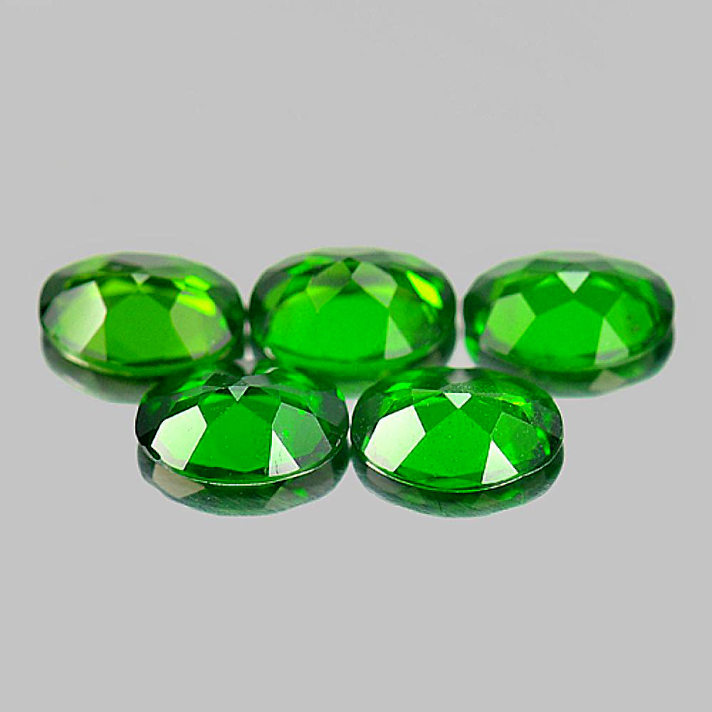 Green Chrome Diopside 3.70 Ct. 5 Pcs. Oval 7.1 x 5.1 Mm. Natural Gems Unheated