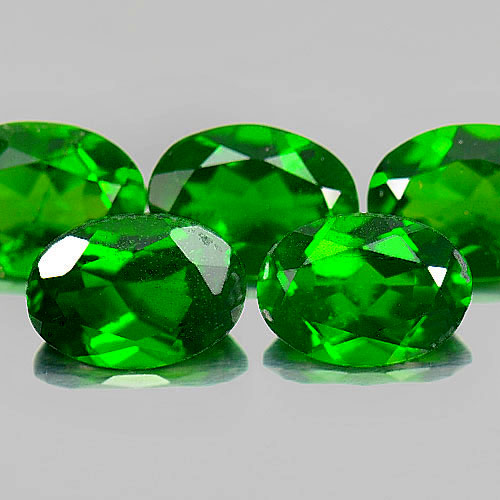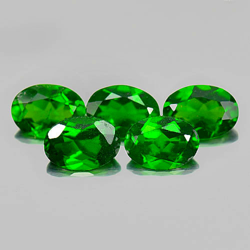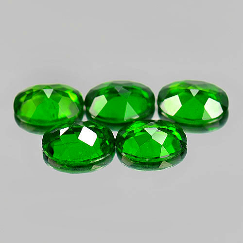 Chrome Diopside Green 3.97 Ct. 5 Pcs. Oval 7.2 x 5.2 Mm. Natural Gems Russia