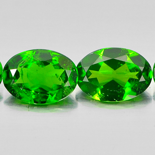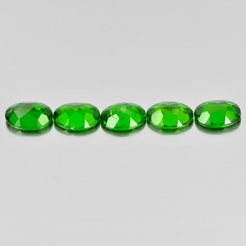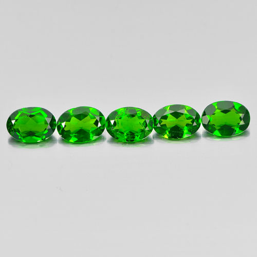 Green Chrome Diopside 3.87 Ct. 5 Pcs. Oval 7.2 x 5.2 Mm. Natural Gems Unheated
