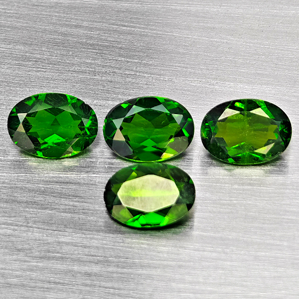 Green Chrome Diopside 3.06 Ct. 4 Pcs. Oval Shape Natural Gemstones From Russia