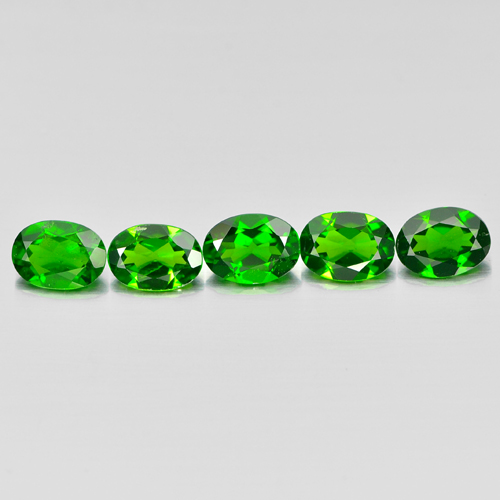 Green Chrome Diopside 3.96 Ct. 5 Pcs. Oval 7 x 5.2 Mm. Natural Gems Unheated