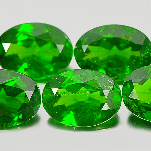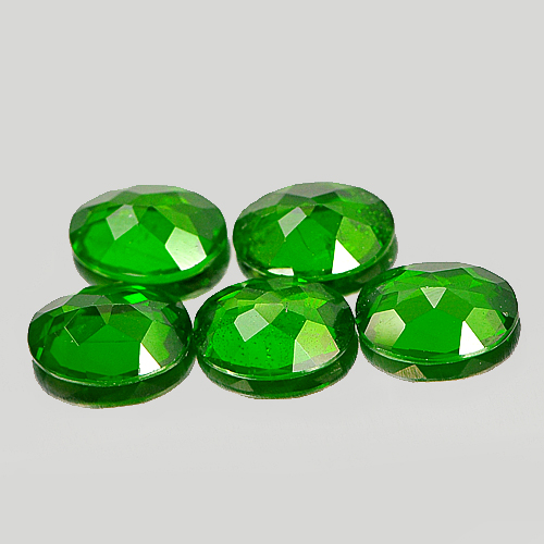 Green Chrome Diopside 3.89 Ct. 5 Pcs. Oval 7.2 x 5.1 Mm. Natural Gems Unheated