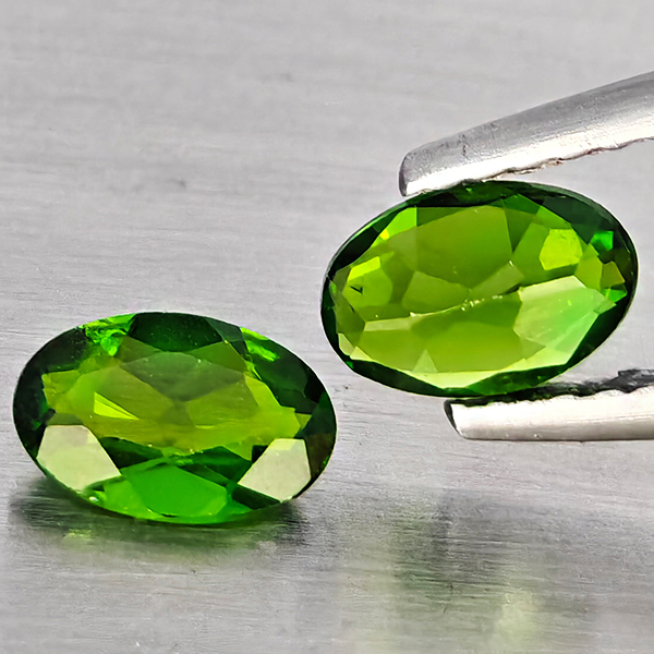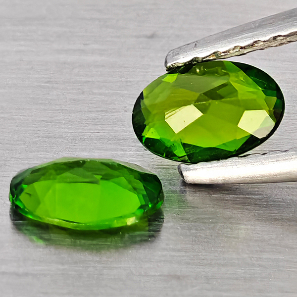 Natural Green Chrome Diopside 0.84 Ct. 2 Pcs Oval Shape 6.2 x 4.2 Mm Gemstones From Russia