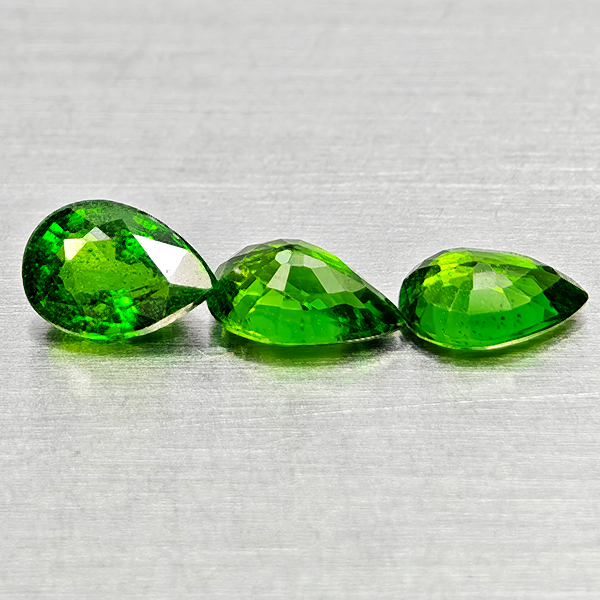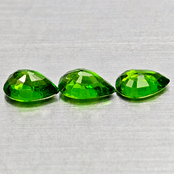 Natural Green Chrome Diopside 0.78 Ct. 3 Pcs Pear Shape Gemstone From Russia