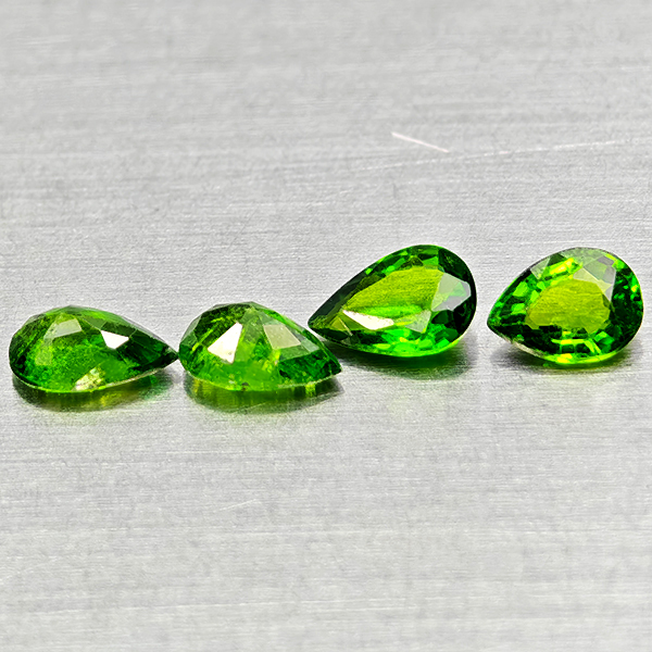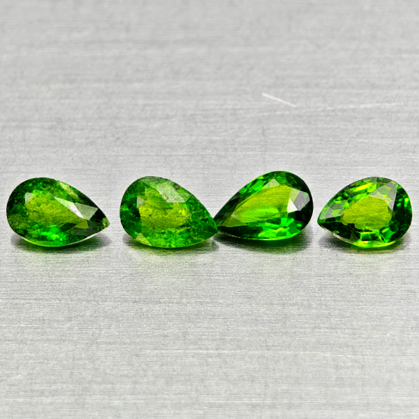 Natural Green Chrome Diopside 0.71 Ct. 4 Pcs Pear Shape Gemstone From Russia