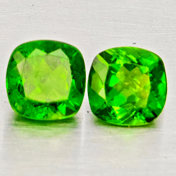 Natural Green Chrome Diopside 1.23 Ct. 2 Pcs Cushion Shape 5 Mm Gemstones