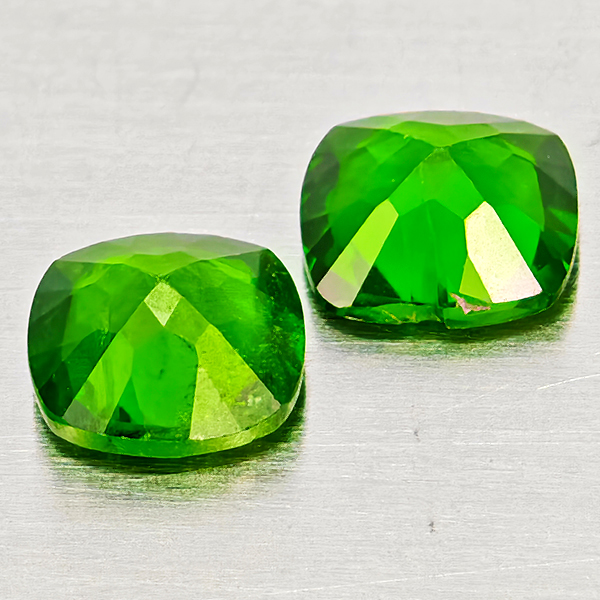 Natural Green Chrome Diopside 0.96 Ct. 2 Pcs Cushion Shape 5 Mm Gemstones