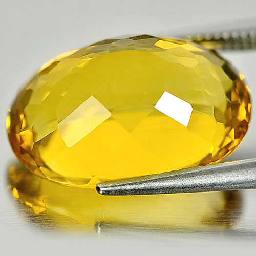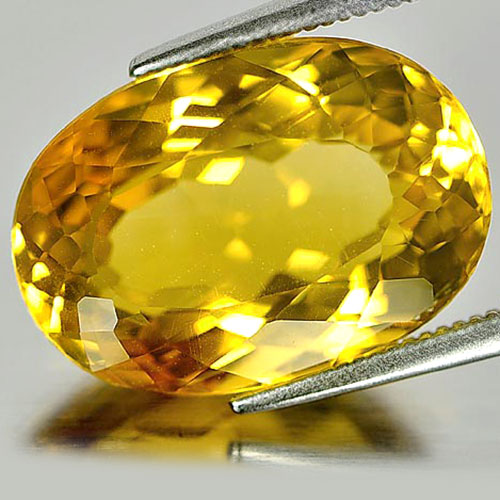Yellow Citrine 10.14 Ct. VVS Oval Shape 16.6 x 11.6 Mm. Natural Gem From Brazil