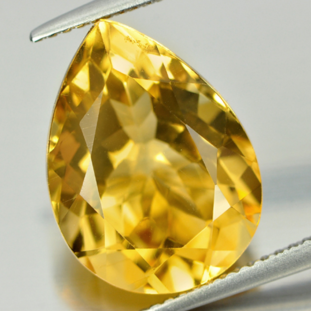 Yellow Citrine 8.33 Ct. Clean Pear Shape 16.1 x 11.8 Mm. Natural Gemstone Brazil