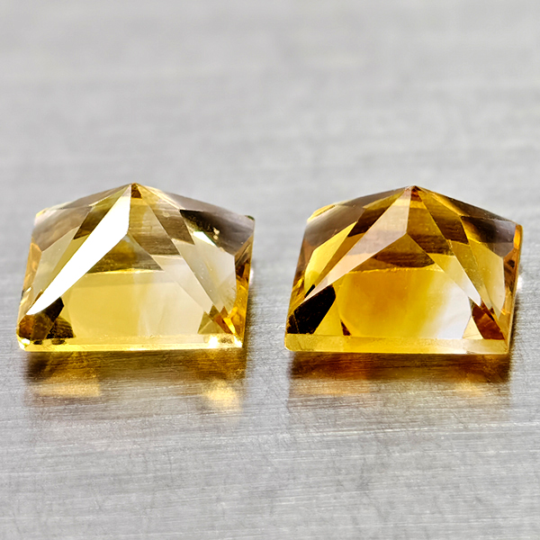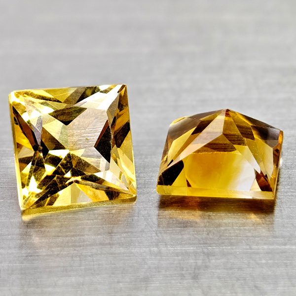 Natural Yellow Citrine 2.89 Ct 2 Pcs Square Princess Cut 7 Mm Gemstones