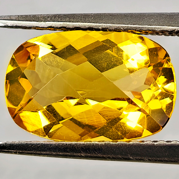 Natural Yellow Citrine 2.33 Ct. Cushion Checkerboard Cut 11.1 x 7.3 Mm. Gemstone