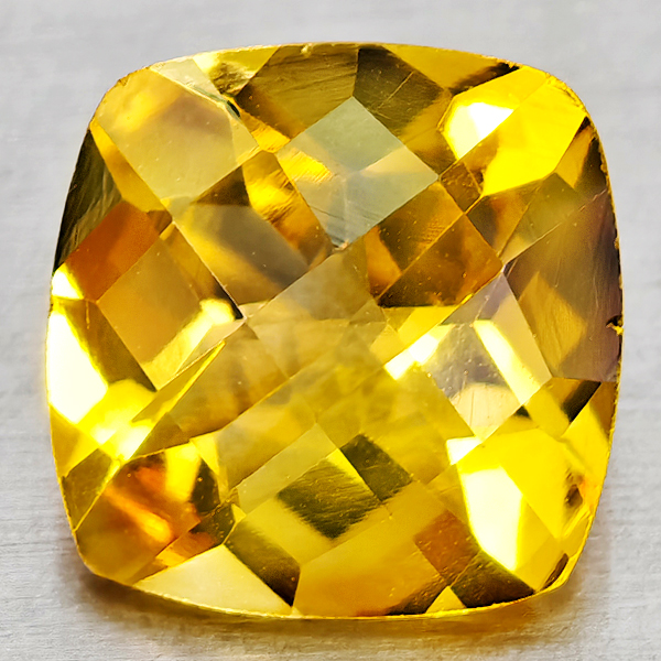 Natural Yellow Citrine 3.23 Ct. Cushion Checkerboard Cut 10 Mm. Gemstone