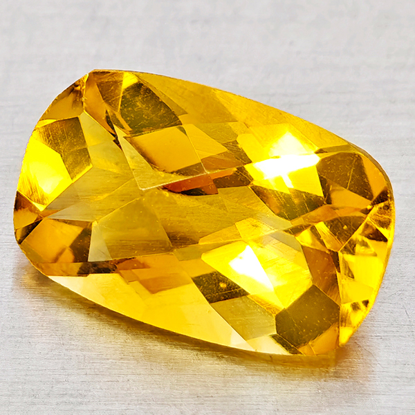 Natural Yellow Citrine 2.32 Ct. Cushion Checkerboard Cut 11.2 x 7.2 Mm. Gemstone