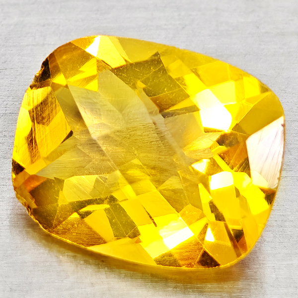 Natural Yellow Citrine 2.27 Ct. Cushion Checkerboard Cut 10.1 x 8.1 Mm. Gemstone