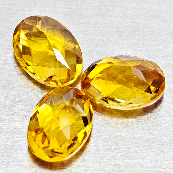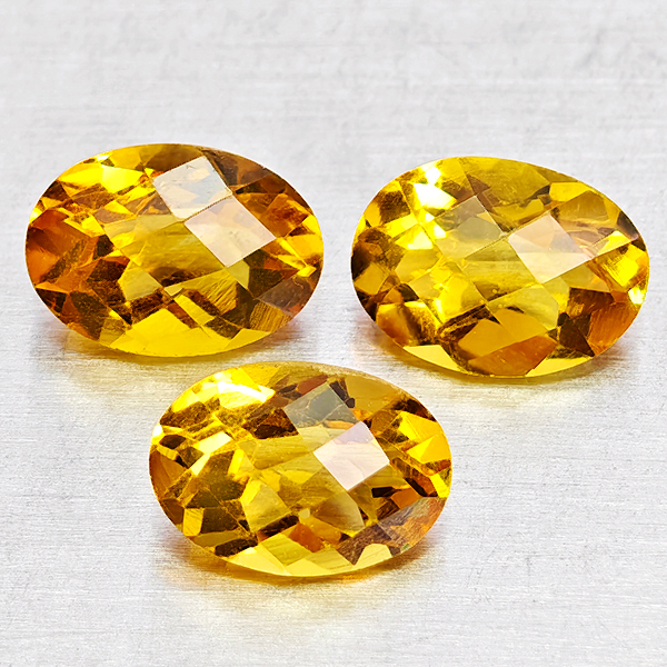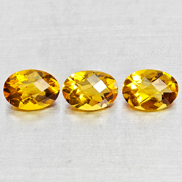 Natural Yellow Citrine 2.26 Ct. 3 Pcs Oval Checkerboard Cut 7.2 x 5.1 Mm Gems