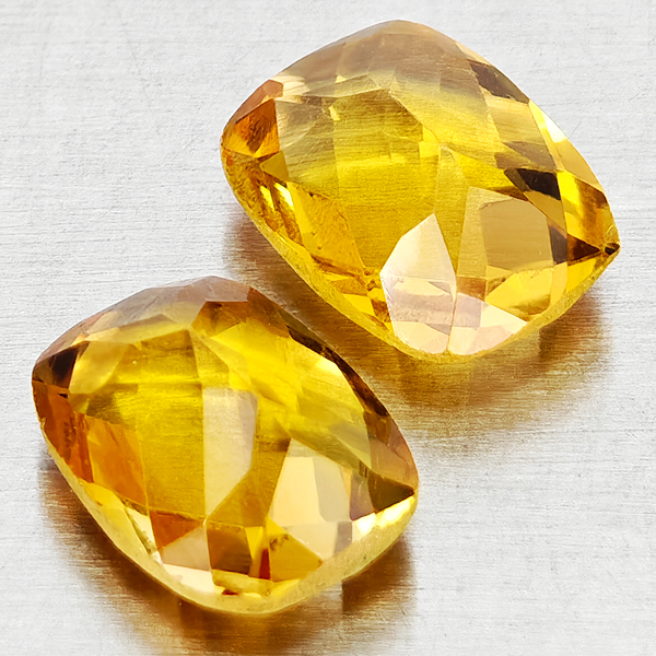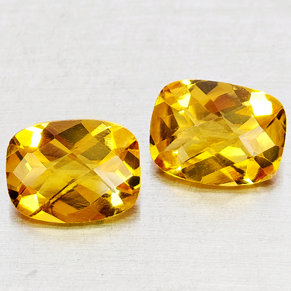 Natural Yellow Citrine 2.44 Ct. 2 Pcs Cushion Checkerboard Cut 8.1 x 6.2 Mm.Gems