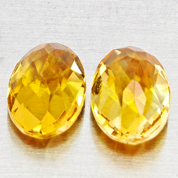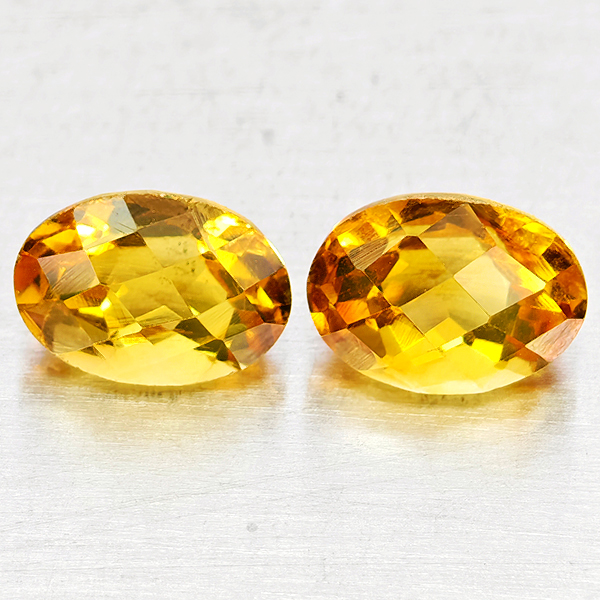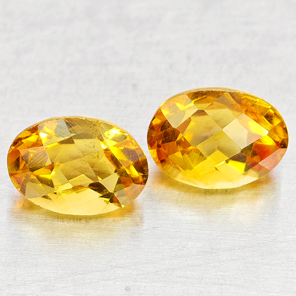 Natural Yellow Citrine 1.83 Ct. 2 Pcs Oval Checkerboard Cut 7.1 x 5.1 Mm Gems