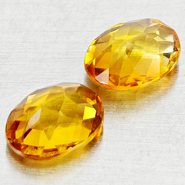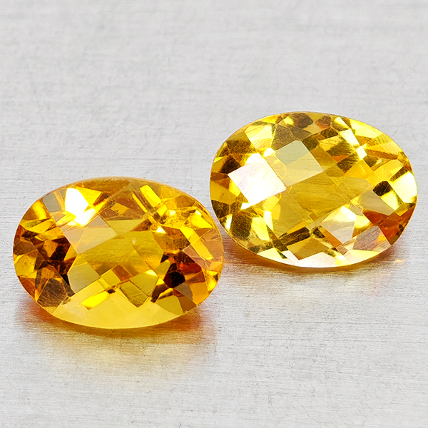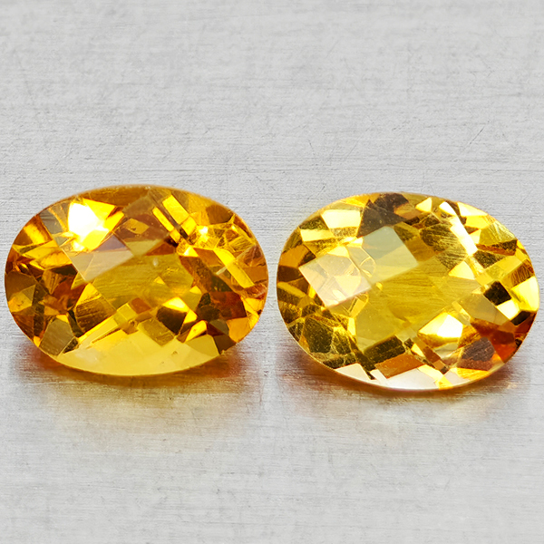 Natural Yellow Citrine 1.72 Ct. 2 Pcs Oval Checkerboard Cut 7.2 x 5.3 Mm Gems