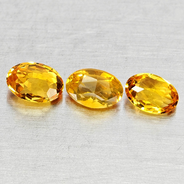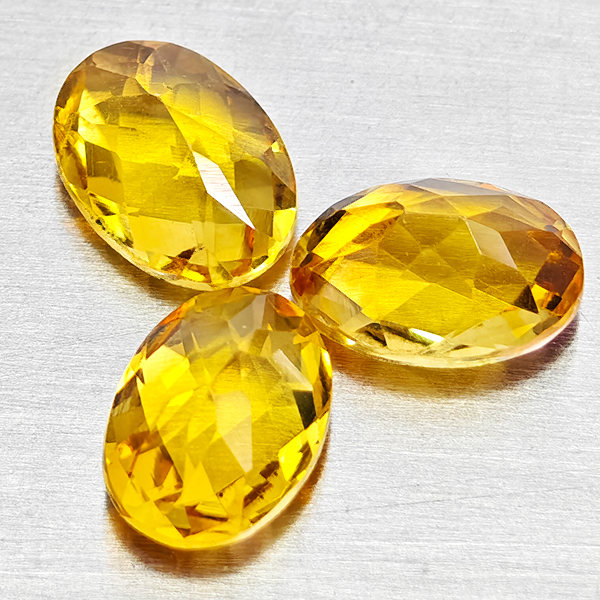 Natural Yellow Citrine 1.47 Ct. 3 Pcs Oval Checkerboard Cut 6 x 4.3 Mm Gems