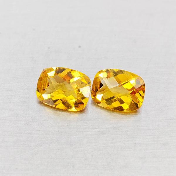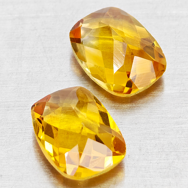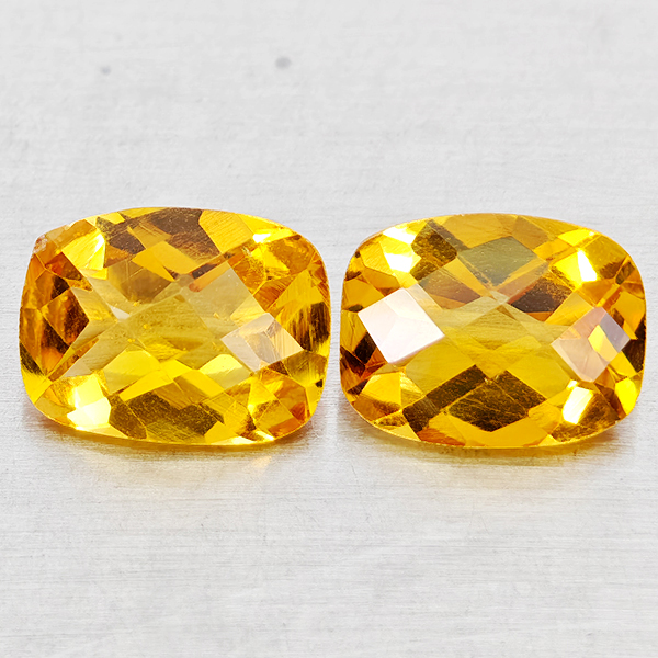 Natural Yellow Citrine 2.52 Ct. 2 Pcs Cushion Checkerboard Cut 8.1 x 6.3 Mm.Gems
