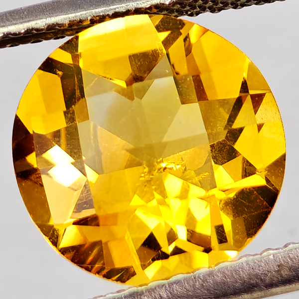 Natural Yellow Citrine 2.88 Ct.Round Checkerboard Cut 10 Mm Gemstone From Brazil