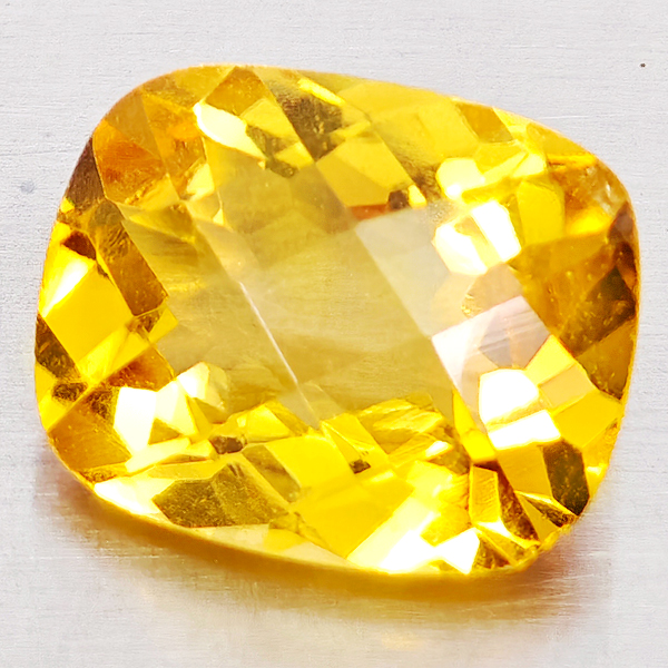Natural Yellow Citrine 2.52 Ct. Cushion Checkerboard Cut 10.1 x 8.1 Mm. Gemstone