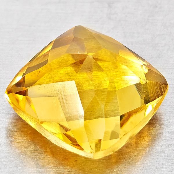 Natural Yellow Citrine 3.84 Ct. Cushion Checkerboard Cut 9.9 Mm. Gemstone