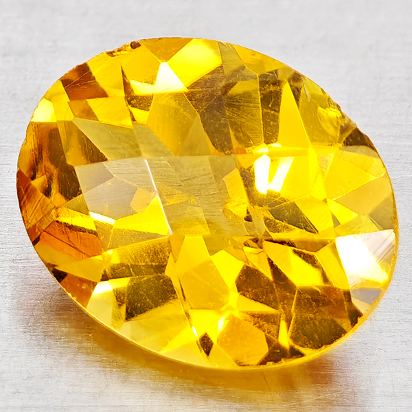 Natural Yellow Citrine 1.87 Ct. Oval Checkerboard Cut 10 x 7.9 Mm. Gemstone