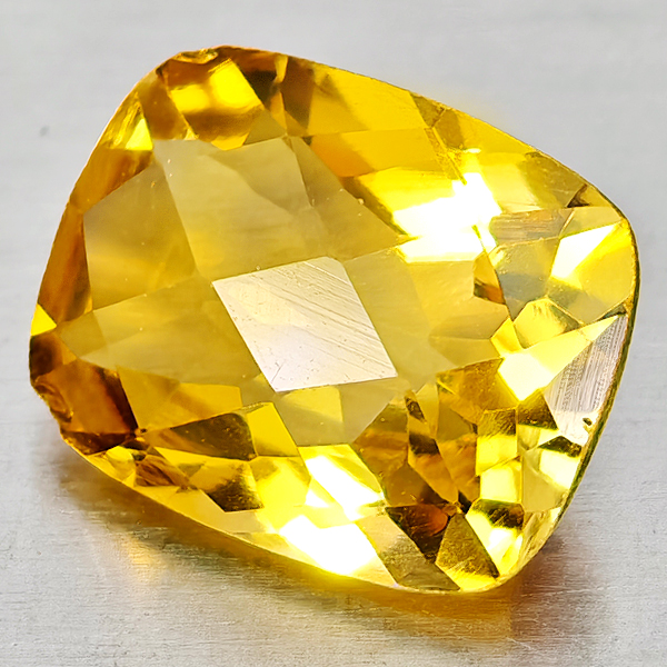 Natural Yellow Citrine 2.51 Ct. Cushion Checkerboard Cut 10.2 x 8.2 Mm. Gemstone