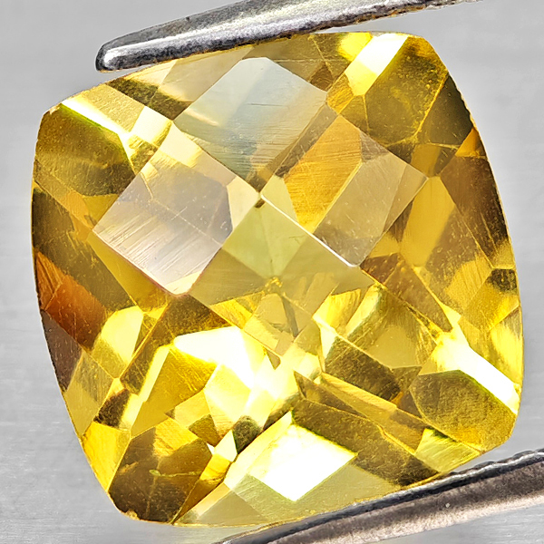 Natural Yellow Citrine 4.02 Ct. Cushion Checkerboard Cut 10.2 x 10.1 Mm Gemstone