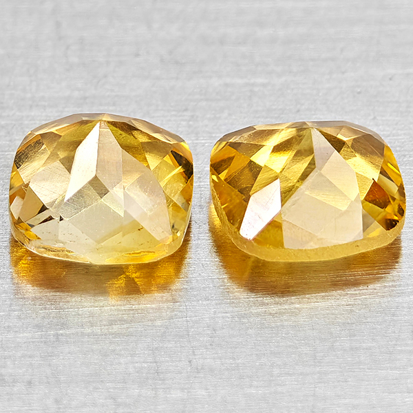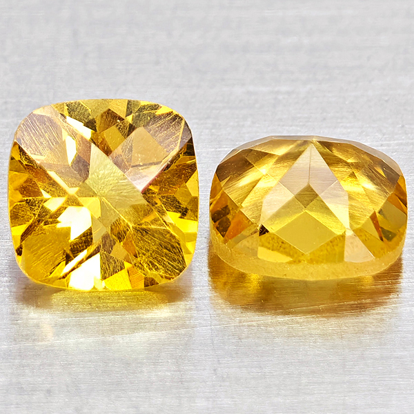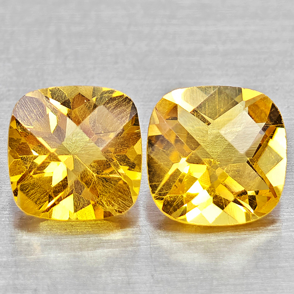 Natural Yellow Citrine 1.88 Ct. 2 Pcs Cushion Checkerboard Cut 6.3 x 6.3 Mm Gems