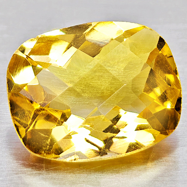 Natural Yellow Citrine 2.43 Ct. Cushion Checkerboard 10.1 x 8.1 x 5.2 Mm. Gemstone