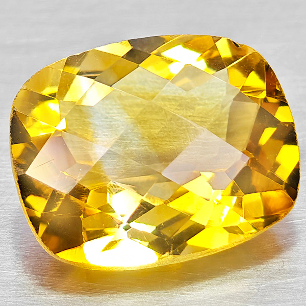 Natural Yellow Citrine 2.51 Ct. Cushion Checkerboard 10.2 x 8.2 x 5 Mm. Gemstone