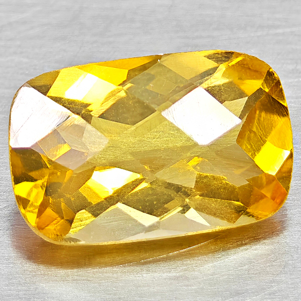 Natural Yellow Citrine 2.58 Ct. Cushion Checkerboard 11.1 x 7.1 Mm. Gemstone