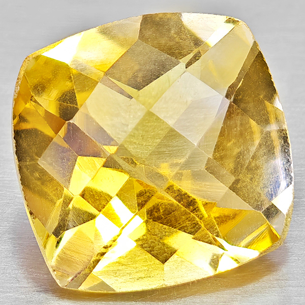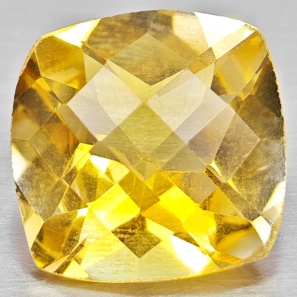 Natural Yellow Citrine 3.52 Ct. Cushion Checkerboard Cut 10.1 x 10 Mm Gemstone