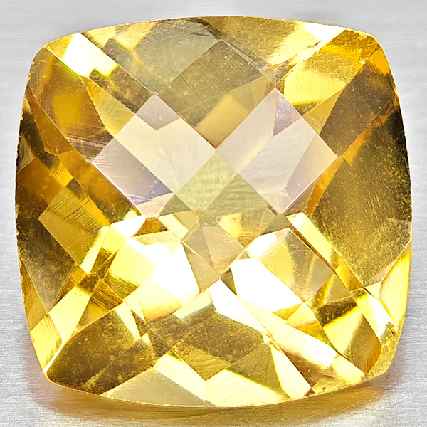 Natural Yellow Citrine 3.45 Ct. Cushion Checkerboard Cut 10 x 9.9 Mm Gemstone